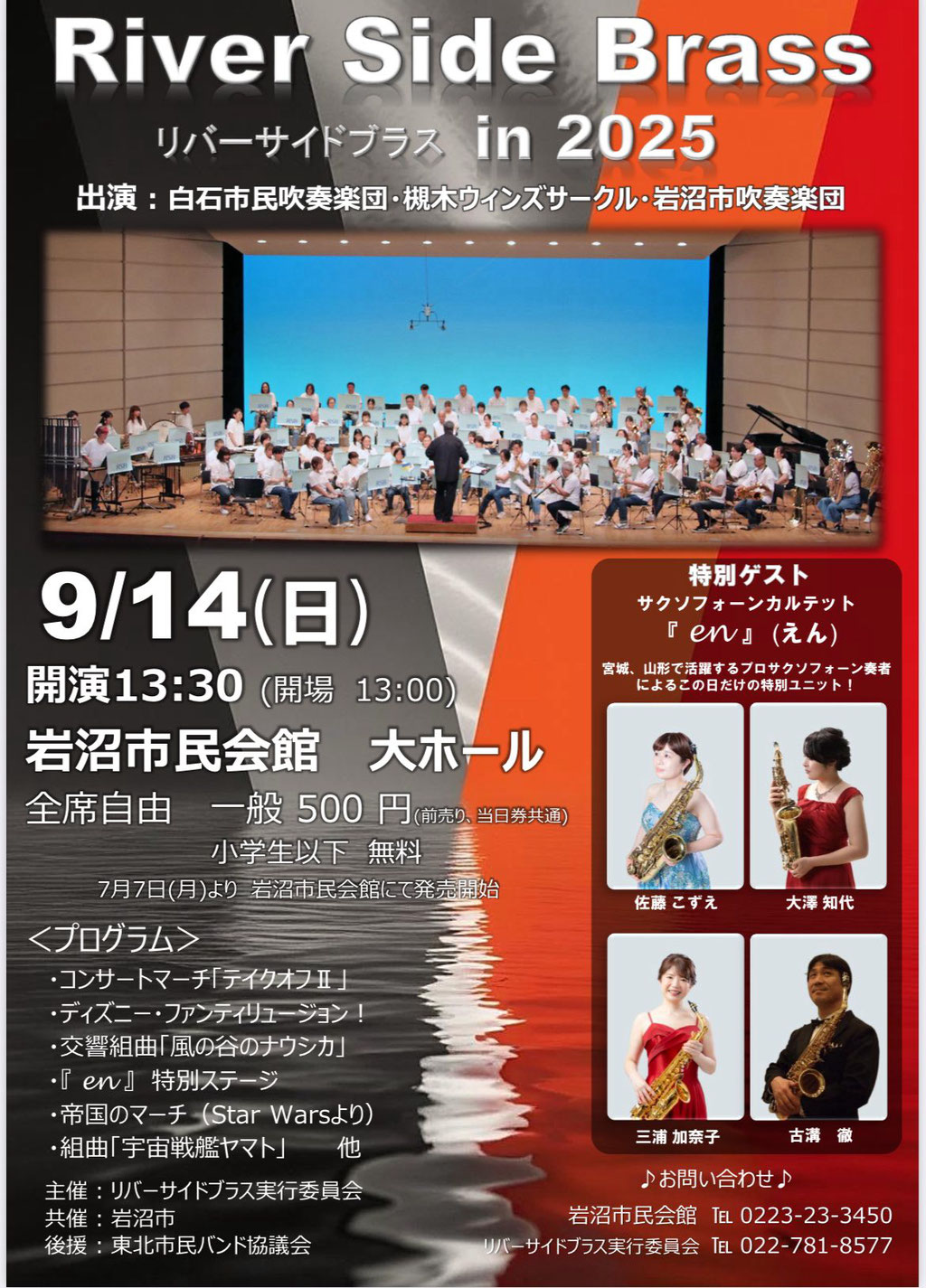 岩沼市吹奏楽団・白石市民吹奏楽団の・槻木ウインズサークルの演奏会です!