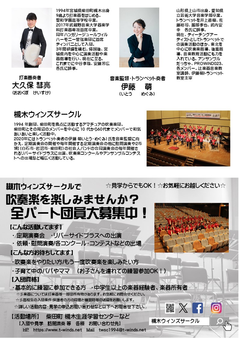 槻木ウィンズサークルでは2025年第23回定期演奏会へ向けて団員を大募集中です!